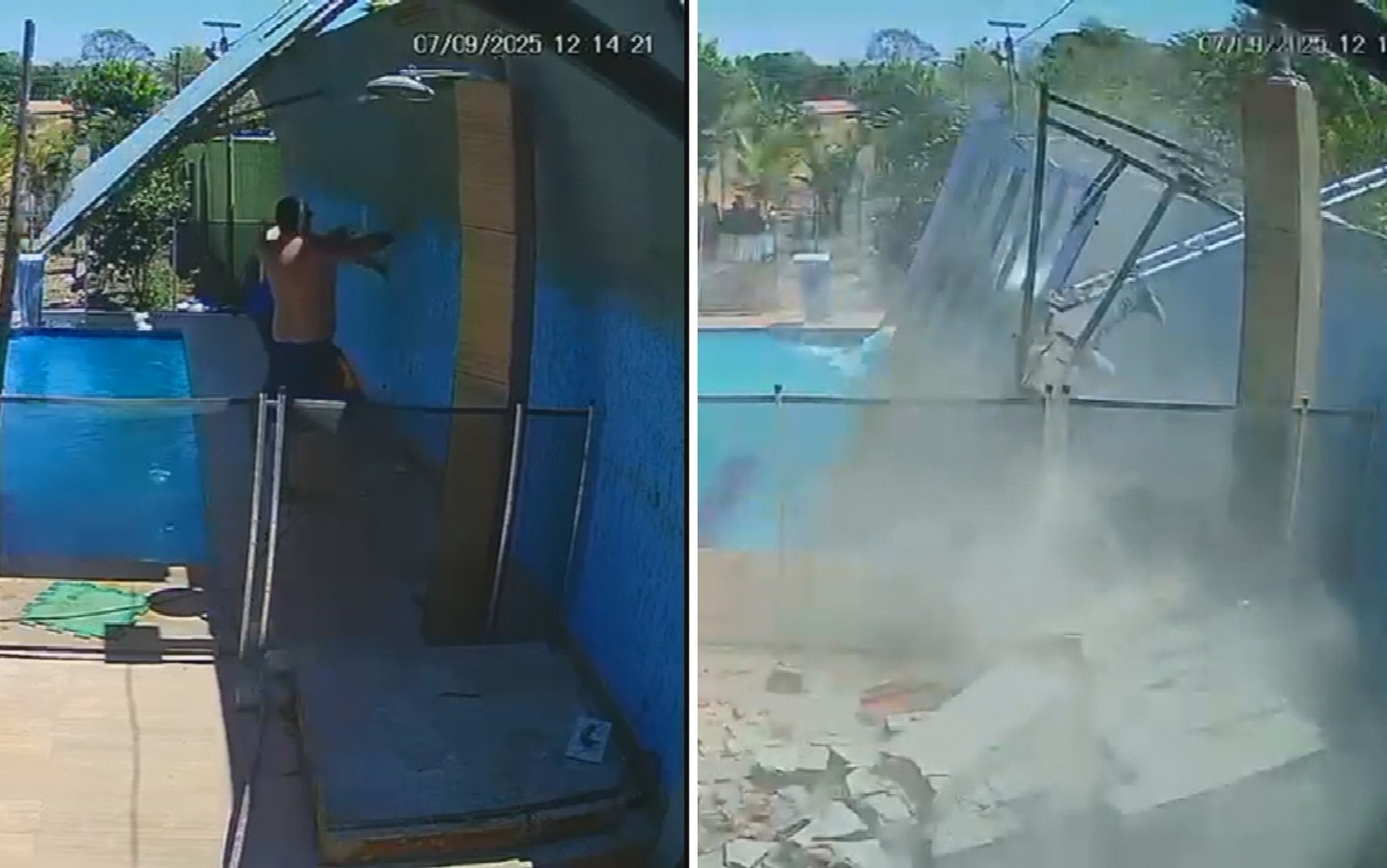 | 10/09/2025 Muro desaba sobre piscina e atinge homens; vídeo |